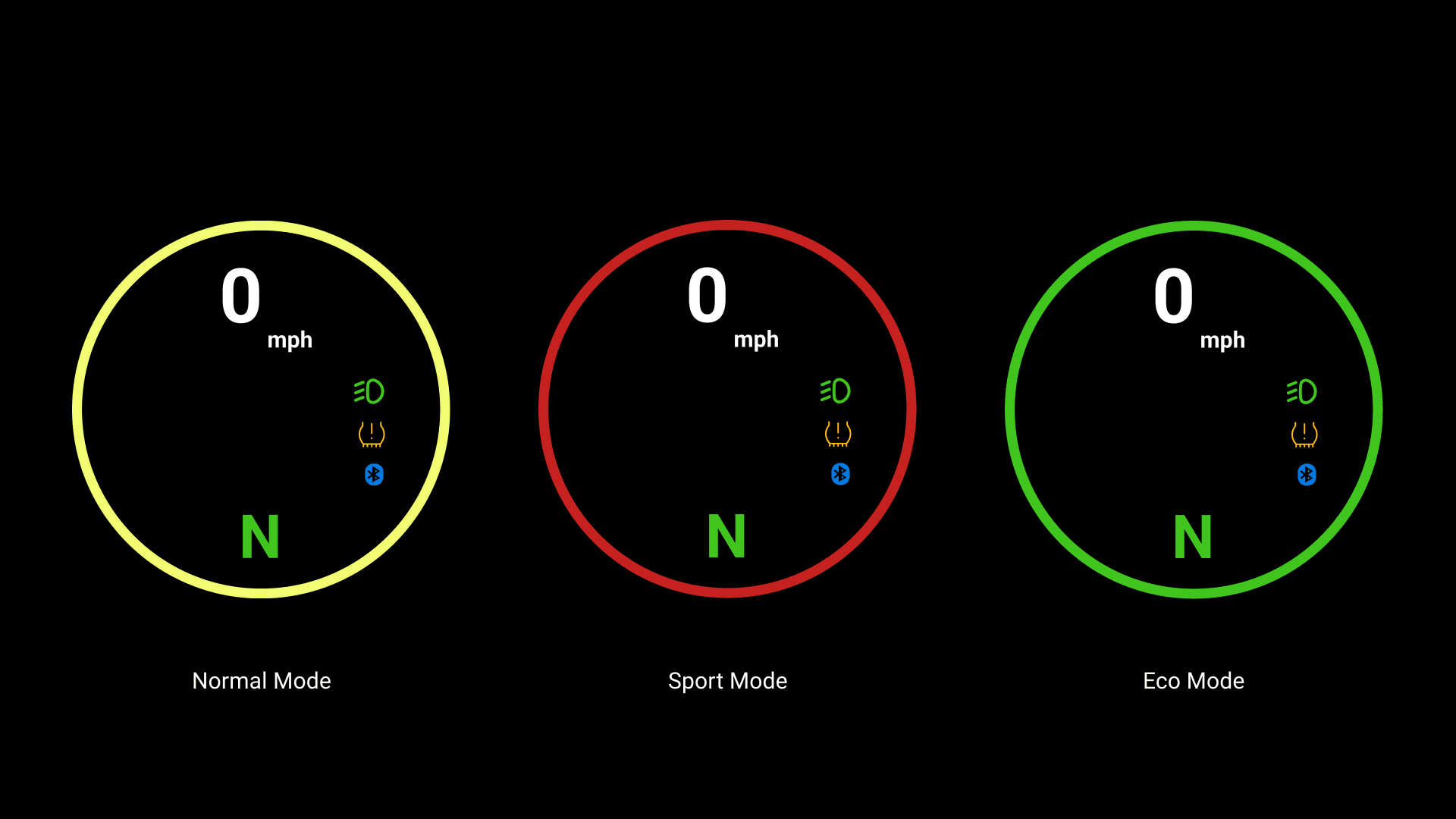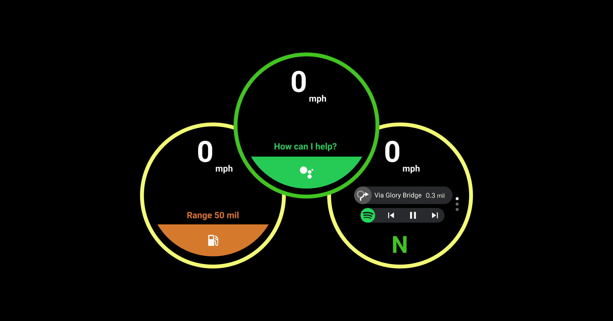 The core Android Auto interaction principles were adapted for the motorcycle cluster design with safety and focus in mind. While prioritizing essential motorcycle data like speed for constant visibility, the layout integrates core Android Auto features seamlessly. To minimize the need to look down, voice commands and potential handlebar controls are explored for interacting with navigation and music. Glanceability is emphasized through clear icons and a high-contrast color scheme suitable for various lighting conditions.