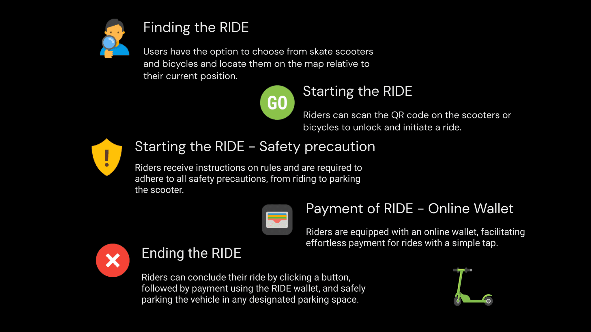 Throughout the project, I gained valuable insights into the importance of safety education during ride initiation, the significance of clear and concise guidelines, and the seamless integration of eco-friendly gamification elements.