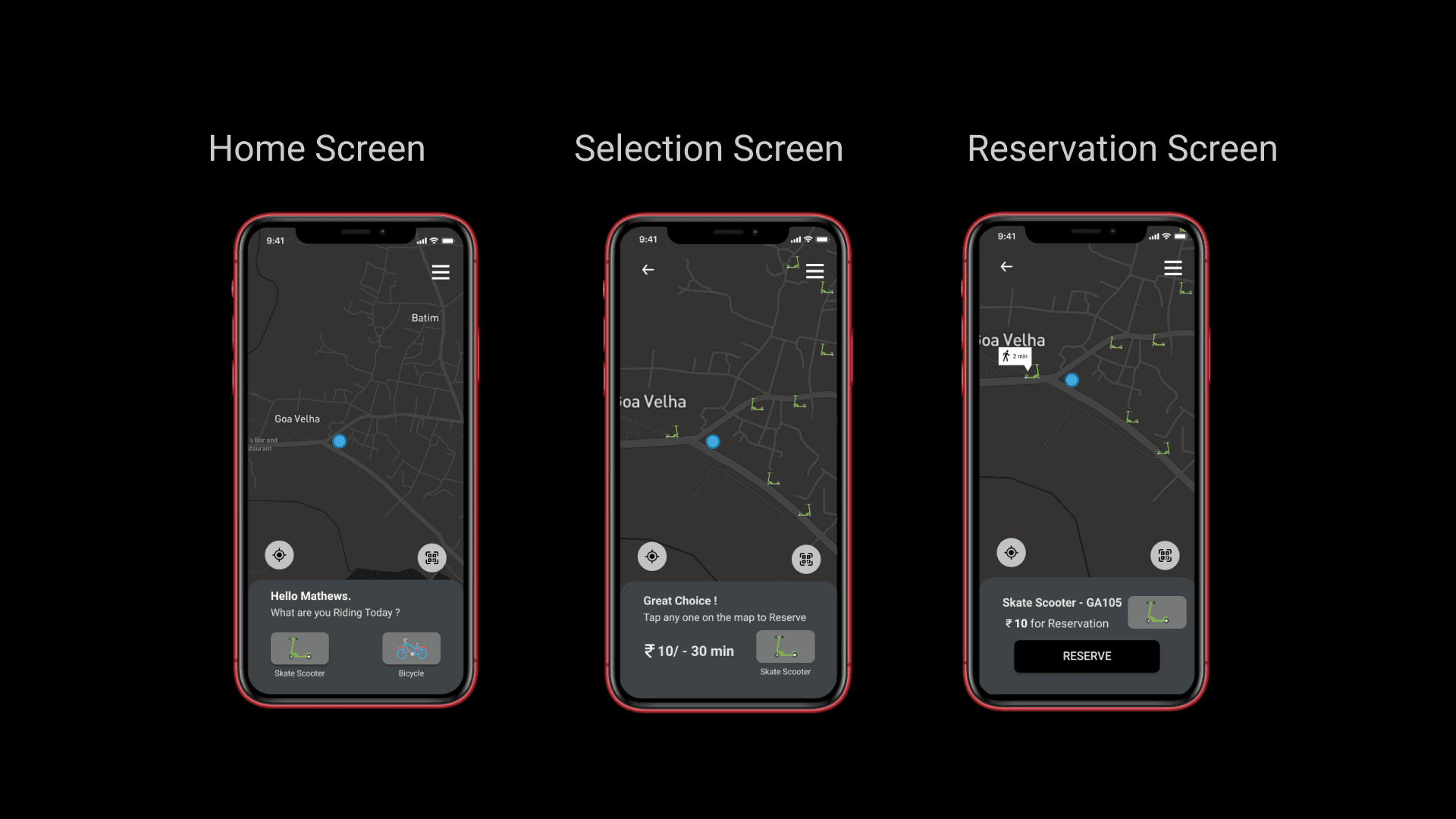 The Ideate phase kicked off with generating ideas on how to tackle the app design and its features. The app provides users with flexibility, allowing them to reserve their preferred mode of transportation and complete the payment after the ride. By addressing user pain points, RIDE surpasses its competitors by offering a more feature-rich and enhanced experience. Riders no longer need to be concerned about returning the bikes to their original rental location; even on one-way trips, they can conveniently drop the vehicle anywhere.